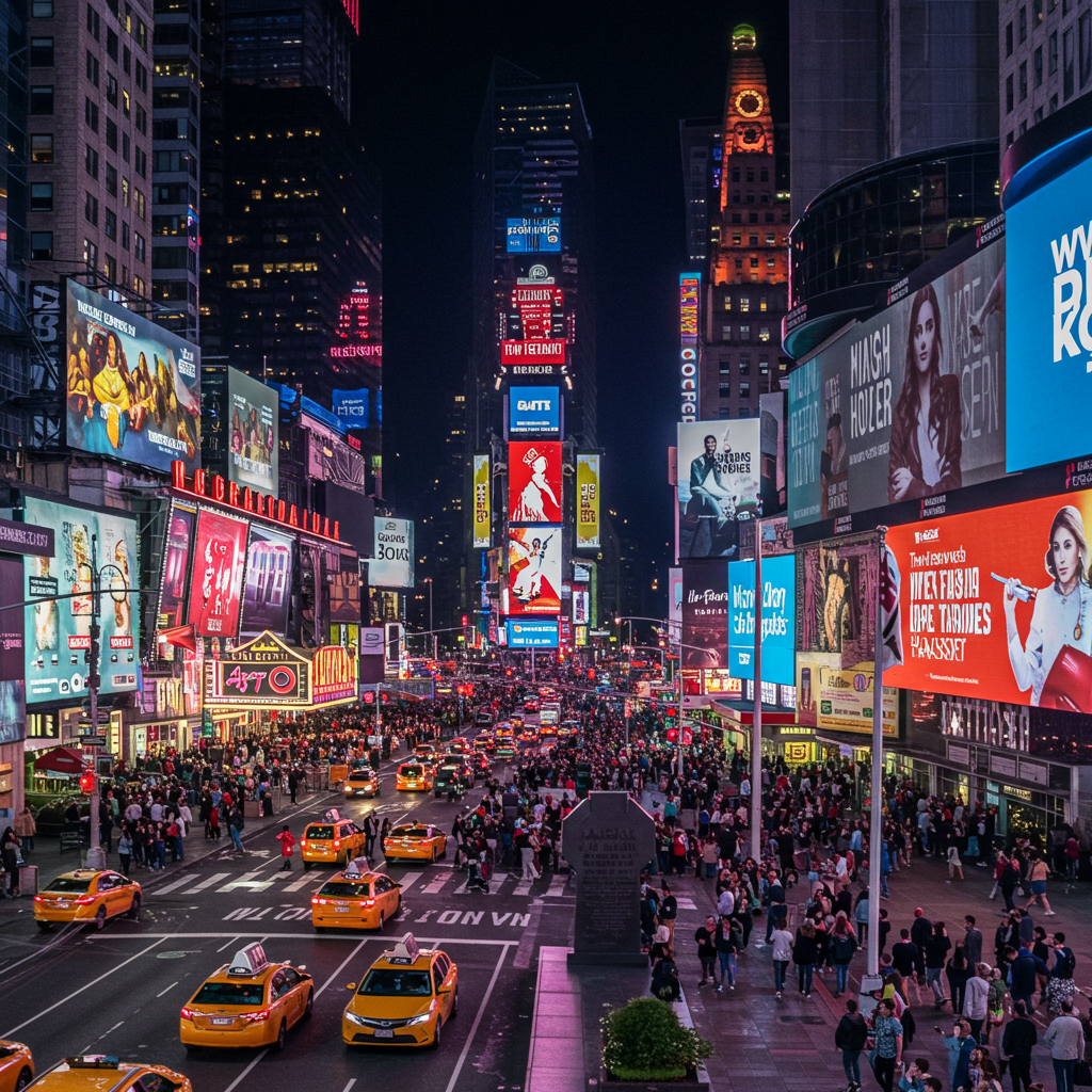 뉴욕의 밤을 상징하는 중심지로, 수많은 네온사인과 대형 전광판이 도시의 활기를 보여줍니다. 특히 새해맞이 카운트다운 행사로 유명합니다.