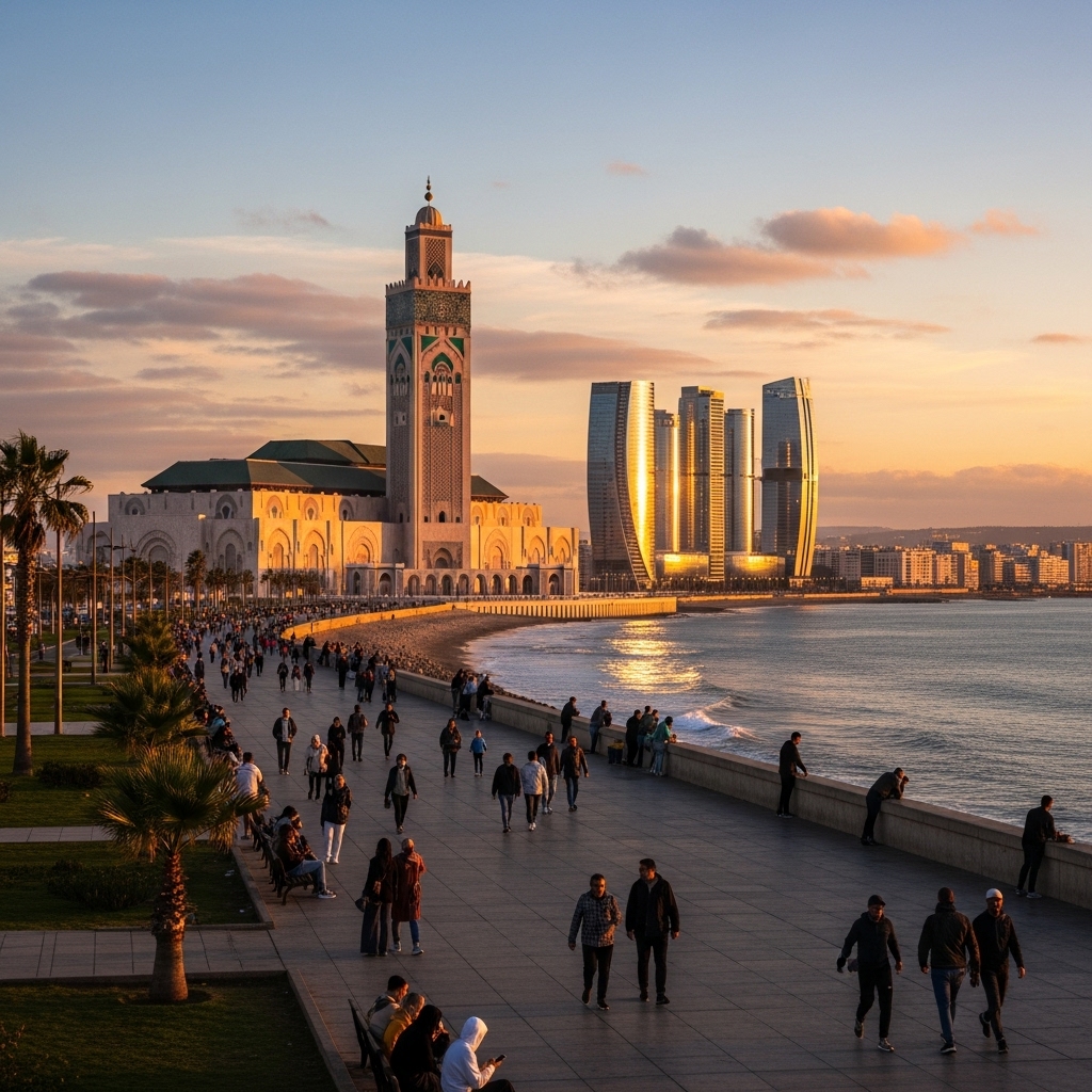 카사블랑카는 북아프리카에서 가장 서구화된 도시이자, 아프리카 진출의 관문입니다. 낮은 생활비, 안정된 경제, 글로벌 취업 환경을 갖추고 있어 프랑스어·영어 기반 전문가나 비즈니스 이민자에게 특히 적합합니다.