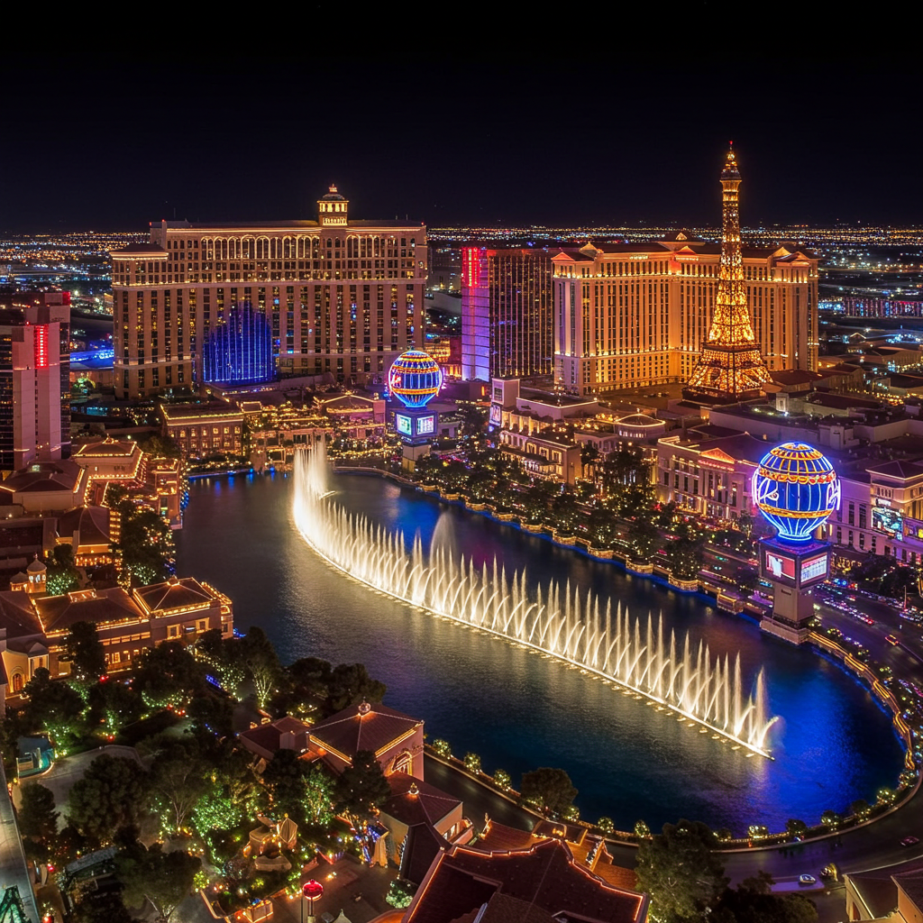 라스베가스의 중심은 볼드 라스베가스 스트립(Las Vegas Strip)입니다. 길게 뻗은 거리 양옆에는 베네치안, 벨라지오, MGM 그랜드 등 유명 호텔과 카지노가 줄지어 있습니다.