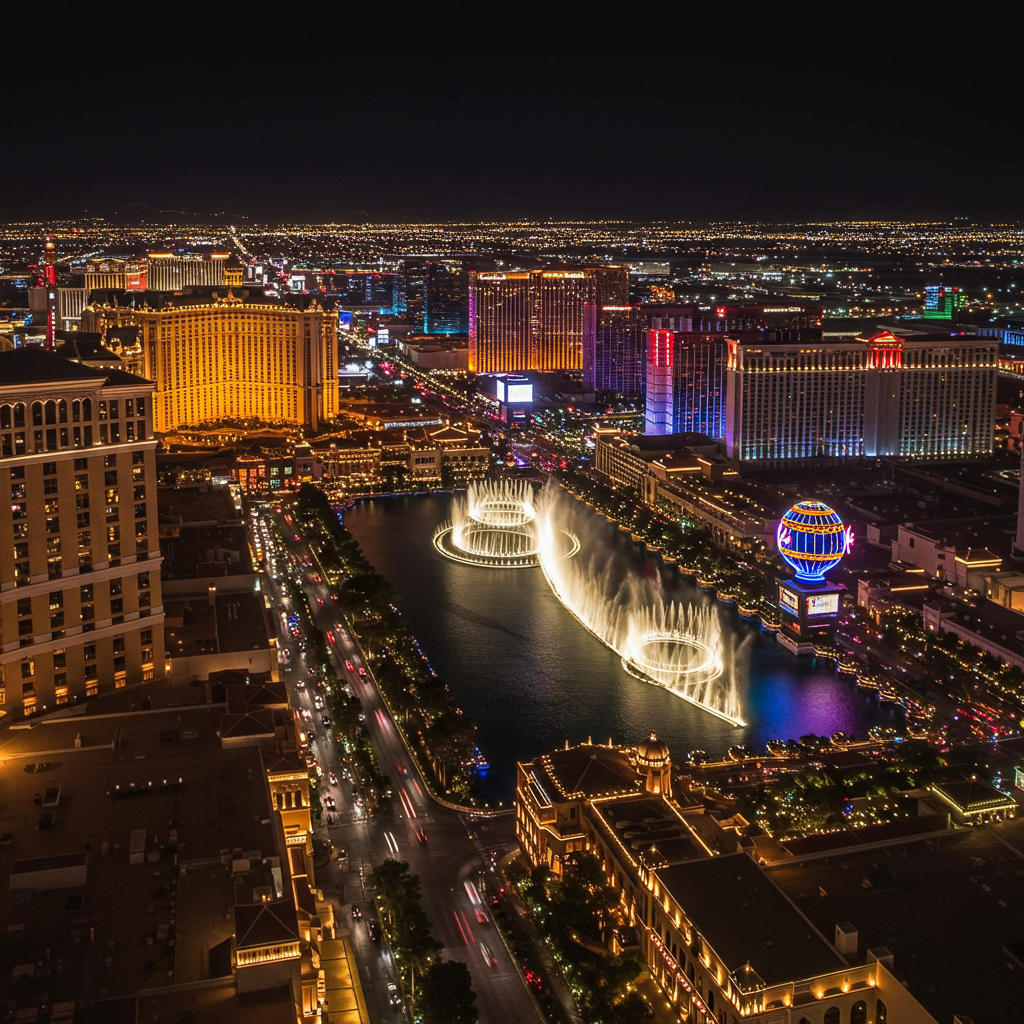 라스베가스는 카지노와 공연의 도시로 유명합니다. 스트립을 따라 벨라지오 호텔 분수쇼, 시저스 팰리스, 베네치안 리조트 같은 대형 호텔이 즐비합니다. 또한 태양의 서커스(Cirque du Soleil) 공연, 세계적 아티스트들의 콘서트가 상시 열립니다. 사막지대답게 골프·헬기투어·그랜드캐니언 투어 같은 액티비티도 인기가 많습니다.