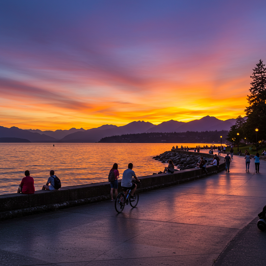 밴쿠버의 랜드마크이자 ‘세계에서 가장 아름다운 도시 공원’ 중 하나로 꼽힙니다. 8km 길이의 해안 산책로 ‘시월(Seawall)’은 조깅·사이클링 명소로 유명합니다.