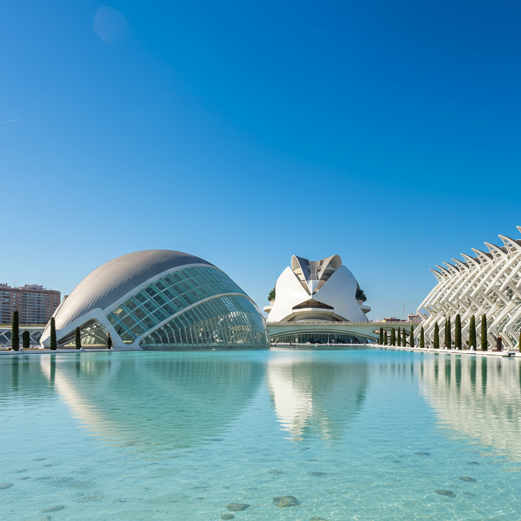 볼드 예술과 과학의 도시(Ciudad de las Artes y las Ciencias)는 미래적인 건축물들이 모여 있는 복합 단지로, 발렌시아의 현대적 이미지를 대표합니다.
