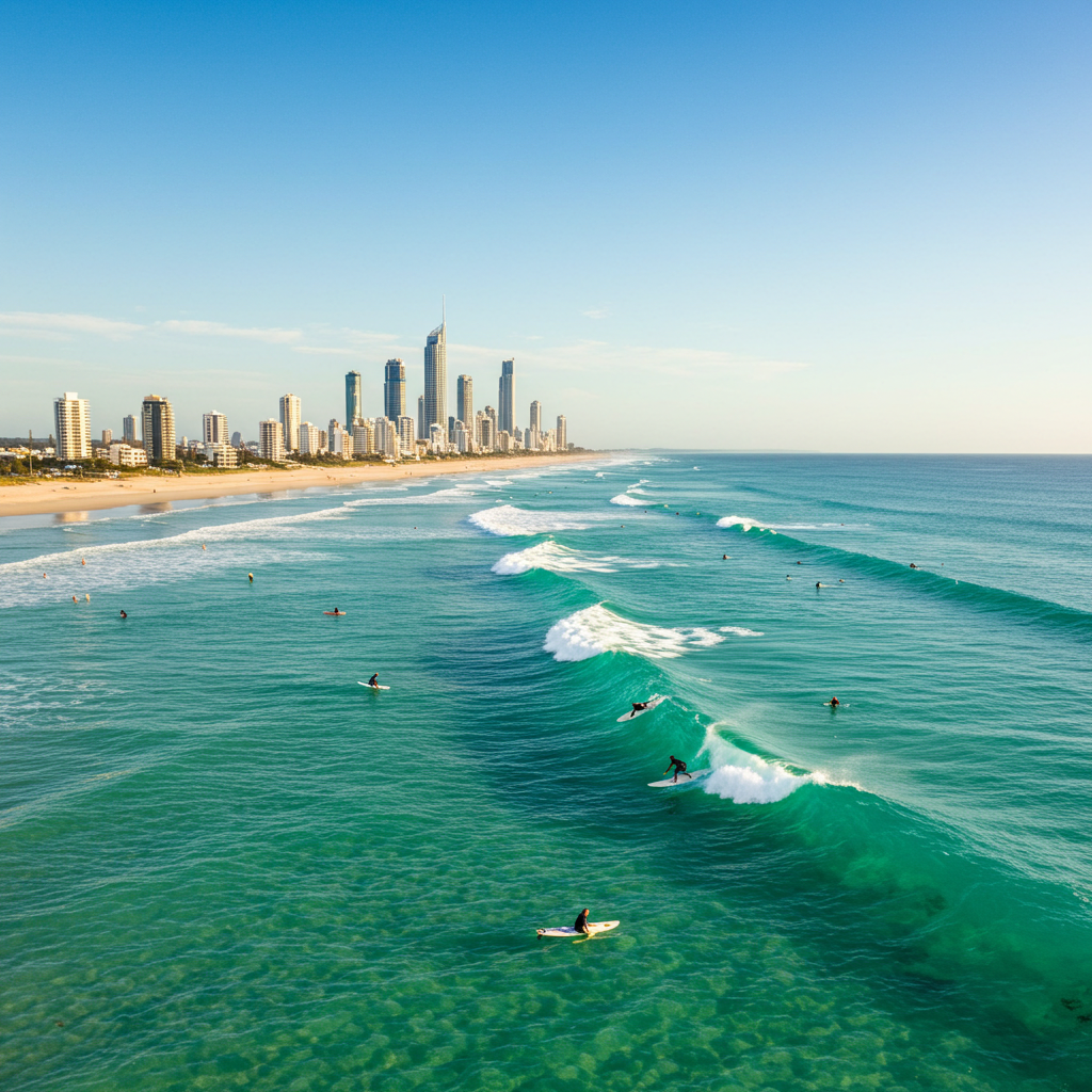 호주 동부 퀸즐랜드 주에 위치한 골드코스트는 황금빛 해변과 현대적인 도시가 조화를 이루는 대표 휴양지입니다. 서핑과 테마파크, 야생 동물 체험까지 즐길 수 있어 가족 여행, 커플 여행, 신혼여행지로 큰 사랑을 받고 있습니다.