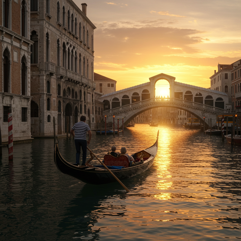 베네치아는 곤돌라 크루즈, 산 마르코 광장 야경, 운하 옆 레스토랑 디너 등 낭만적인 순간을 가득 담을 수 있어 신혼여행에 이상적입니다.